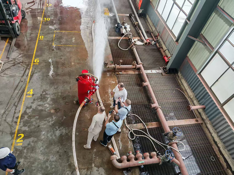 Dne 8.-9. října navštívila naši společnost delegace ruských klientů a vůdců hasičských sborů na tovární audit. Během návštěvy provedli přísné testy na klíčových výkonnostních metrikách produktů, jako je monitor automatického sledování, induktor z pěny a pěnová nádrž-včetně průtoku, rozsahu, rychlosti zhasnutí a přesnost poměru míchání. Díky úsilí o spolupráci celého našeho týmu všechna relevantní technická dokumentace úspěšně schválila audit. Jsme přesvědčeni, že získávání ruské certifikace GOST je bezprostřední.